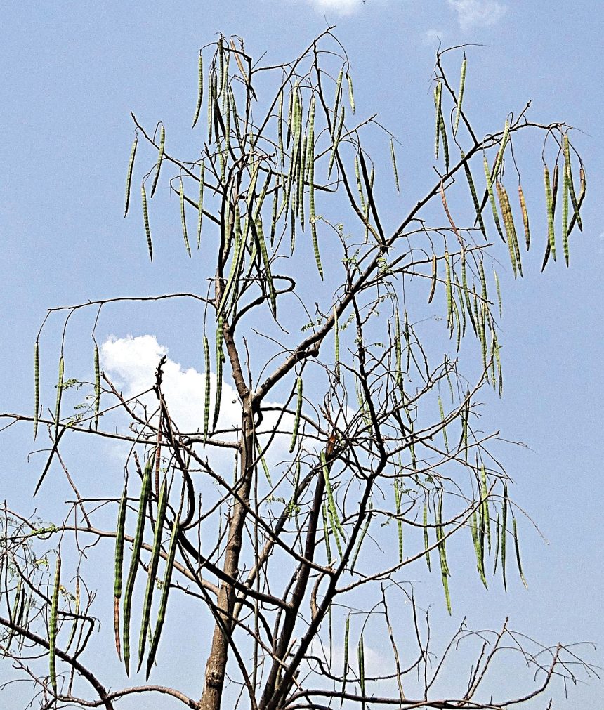 Between March and May, or from July to October, the tree is laden with long seed pods that hang down gracefully in clusters. These pods are called ‘drumsticks’ and are locally known as Shengyo, a favourite ingredient in Goan kitchens. They are parboiled, fried, and cooked into various curries, soups, and traditional dishes. In particular, they lend a wonderful flavour to classic Goan preparations like Tisryo (clams) curry or prawn curry.