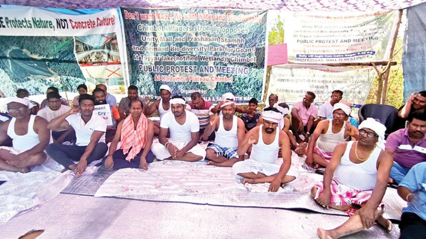 Panaji : Chimbel villagers, along with several environmentalists, began a hunger strike, on Sunday, against the ongoing construction of the Unity Mall.