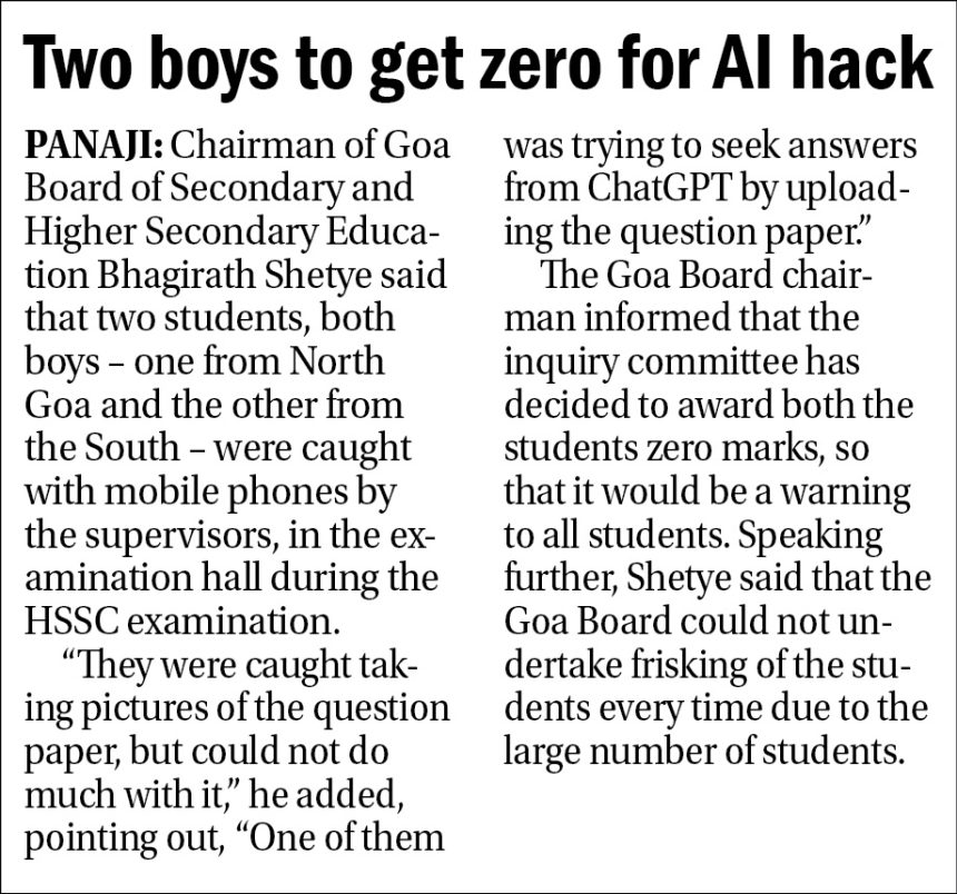 Stating that Goa Board has not increased any fee for answer paper verification or re-valuation, the Goa Board chairman said that the last date for verified photocopy of answer paper is April 1, 2026, for which Rs 350 will be charged per subject.