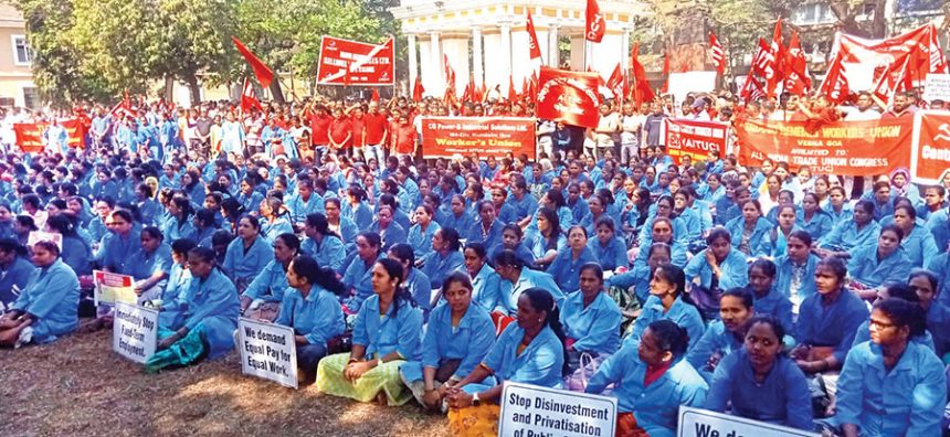 Holding placards and raising slogans, the workers demanded fair wages, stronger job protection, comprehensive social security measures and the resolution of long-pending workers’ issues in Goa.