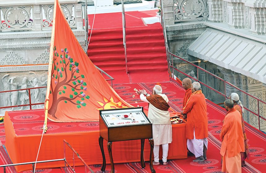 Calling the moment “unique” and “divine”, the Prime Minister said the sacred flag – adorned with the Sun symbol, ‘Om’ and the Kovidara tree – would stand as a testimony to the triumph of truth over falsehood.