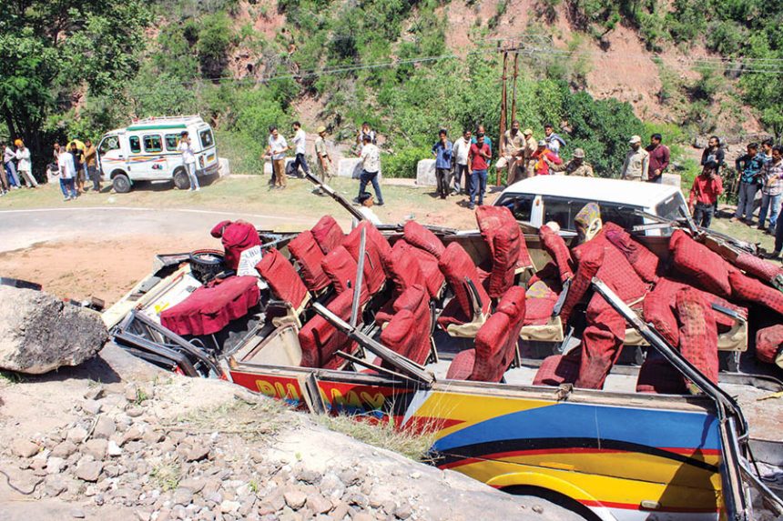“A bus en route from Ramnagar to Udhampur lost control while negotiating a hilly stretch, plunged down the slope and crushed an auto-rickshaw upon landing upside down on the road below. Fifteen passengers were found dead at the scene, while four later succumbed to their injuries in a hospital,” Deputy Inspector General of Police, Udhampur-Reasi Range, Shiv Kumar Sharma told reporters at the site. The officials said two more critically-injured persons succumbed to their injuries at the Udhampur District Hospital during treatment, raising the death toll to 21.
