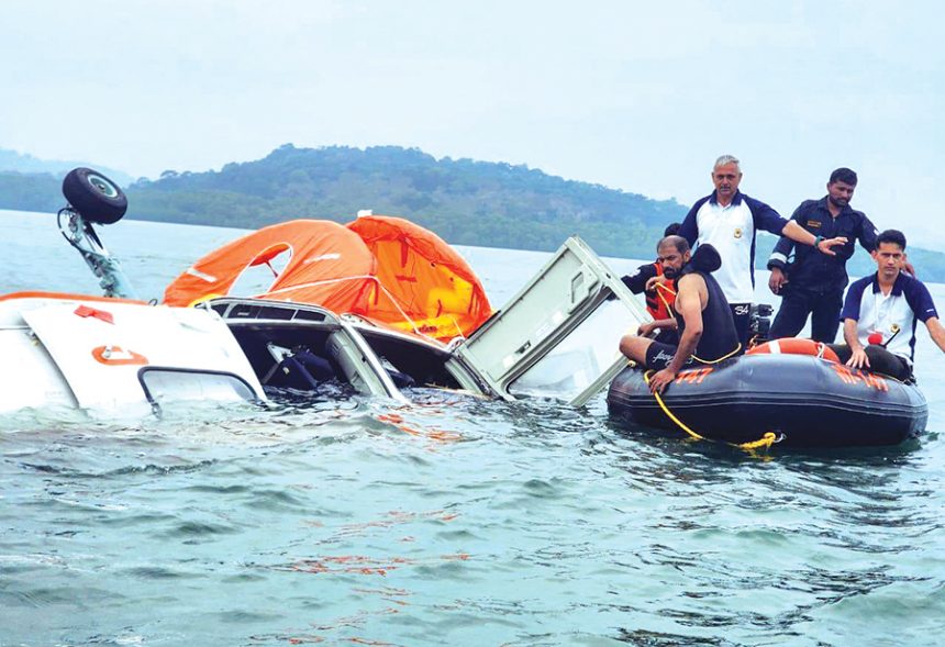 Sri Vijaya Puram: A Pawan Hans helicopter carrying seven people, including two crew members, crashed into the sea just 300 metres away from its scheduled landing at Mayabunder helipad in the Andaman and Nicobar Islands on Tuesday, and all of them were rescued, officials said.