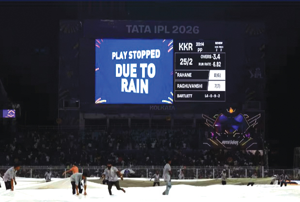 Rahane (8 not out) and wicketkeeper-batter Angkrish Raghuvanshi (7 not out) were attempting to stabilise the innings when rain halted the play at 25 for two after just 3.4 overs.