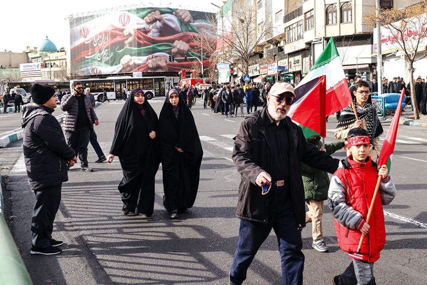 Tens of thousands of mourners attended, holding Iranian flags and photos of Ayatollah Ali Khamenei.