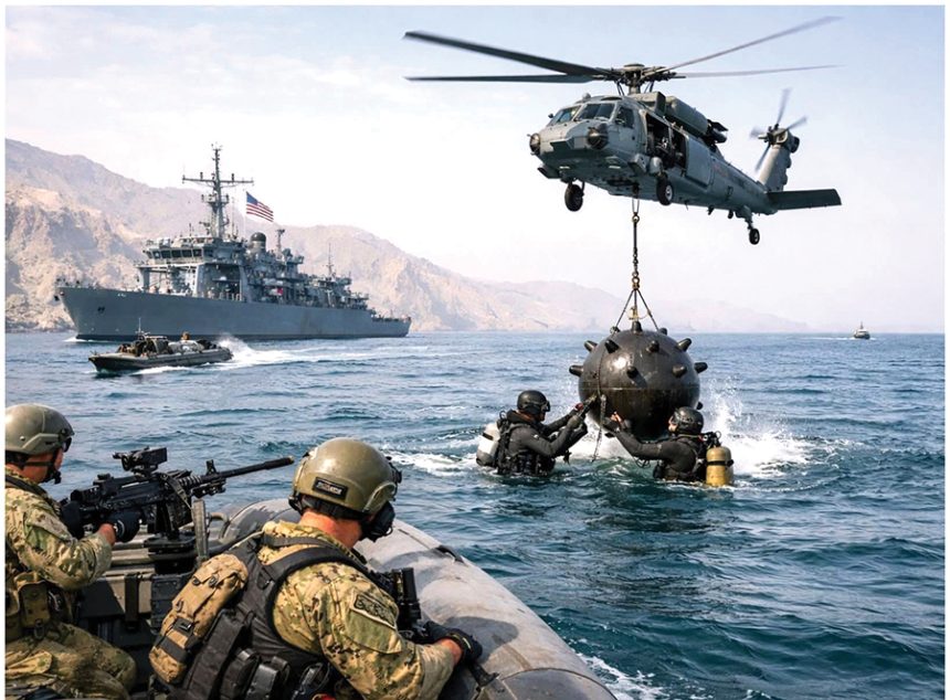 On Saturday, Trump said on social media that the US had begun “clearing out” the strait.